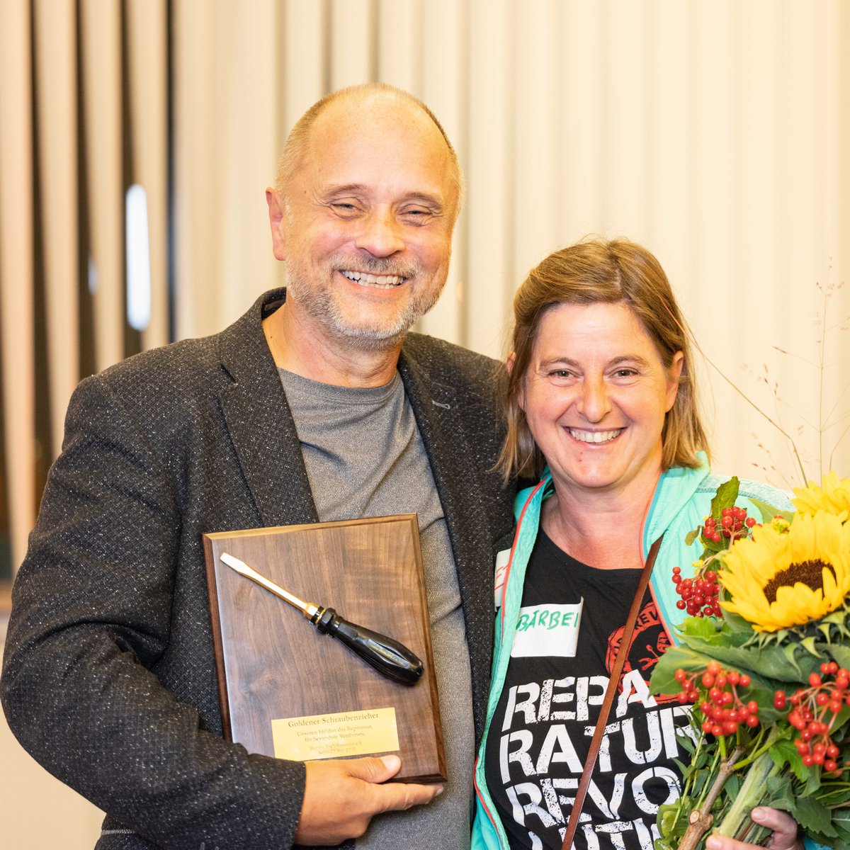 Runder Tisch Reparatur verleiht Goldenen Schraubenzieher. Runder Tisch Reparatur eV. Heinrich Jung Blitzblume Ingelheim Frank Bruer Akkutauschende Katrin Meyer Runder Tisch Reparatur.